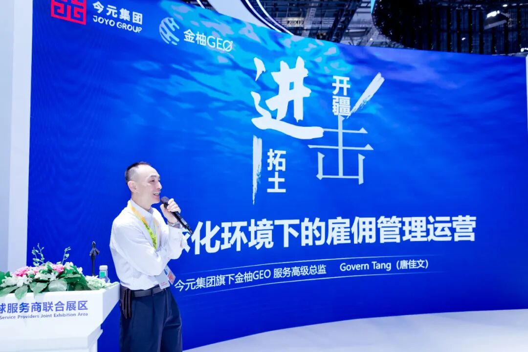 11月7日,在进博会国际静安「全球人力资源服务联合展区」(7.2馆A1-01展台),今元集团旗下金柚GEO服务高级总监唐佳文以《全球化环境下的雇佣管理运营》为主题发表分享,从出海的目标与需求、环境差异、雇主品牌升级与外部专业赋能四大维度,层层递进地剖析了全球化雇佣管理的核心逻辑——人力管理从“执行辅助”转向“战略赋能”,带来具有实践价值的全球化用工解决方案。