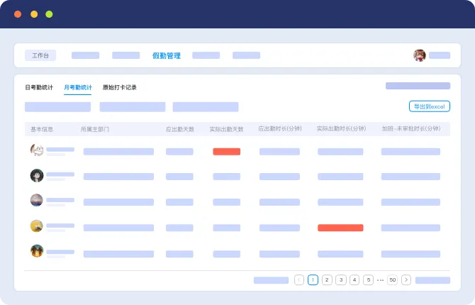 考勤数据集中化:打卡、排班、假期流程等数据统一归集,HR在线实时查出员工勤状态;