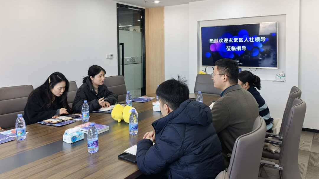 2026年1月14日,南京市玄武区人力资源和社会保障局副局长陈萌、科长韩海香一行莅临今元集团南京分公司考察交流,今元集团南京分公司热情接待。正值国家“十五五”规划的开局之年,双方围绕企业发展、产业服务赋能及就业保障等核心议题展开深入交流,共同探讨了如何将企业发展融入“以人力资源开发利用为主线”的国家战略,以实际行动响应“十五五”规划中促进高质量充分就业的战略部署,共同为“加快构建就业友好型发展方式,全力促进高质量充分就业”贡献力量。