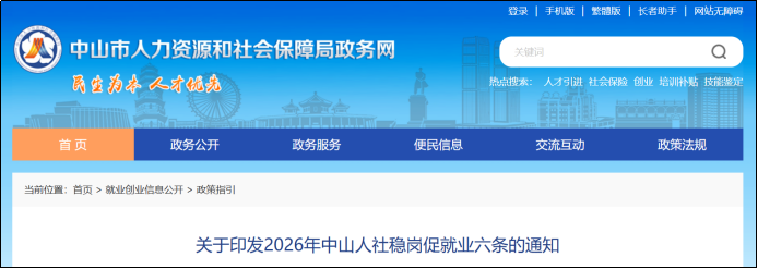 1.“2026年1月至3月期间在中山新就业”是指2025年内未在中山参加企业职工基本养老保险,2026年1月1日至3月31日期间在中山新参加企业职工基本养老保险的员工。