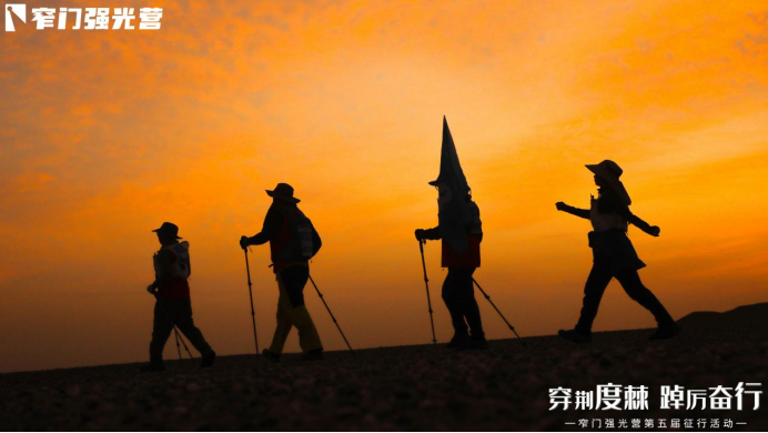凌晨4点半,队员们集结于沉沉夜色中,挑战黑暗戈壁。星光下独自沉默前行,是一场与内心的深度对话。当第一缕阳光跃出地平线,从黑暗到光明的突破,成为窄门强光营课程中“领导力觉醒”最生动的隐喻:唯有突破内心的黑暗,才能迎来决策与格局的光明。中午时分,队员们陆续抵达终点,为徒步征程画上圆满句点。​