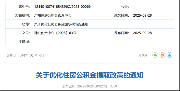 9月28日,广州住房公积金管理中心等部门联合发布《关于优化住房公积金提取政策的通知》,通知自印发之日起施行。