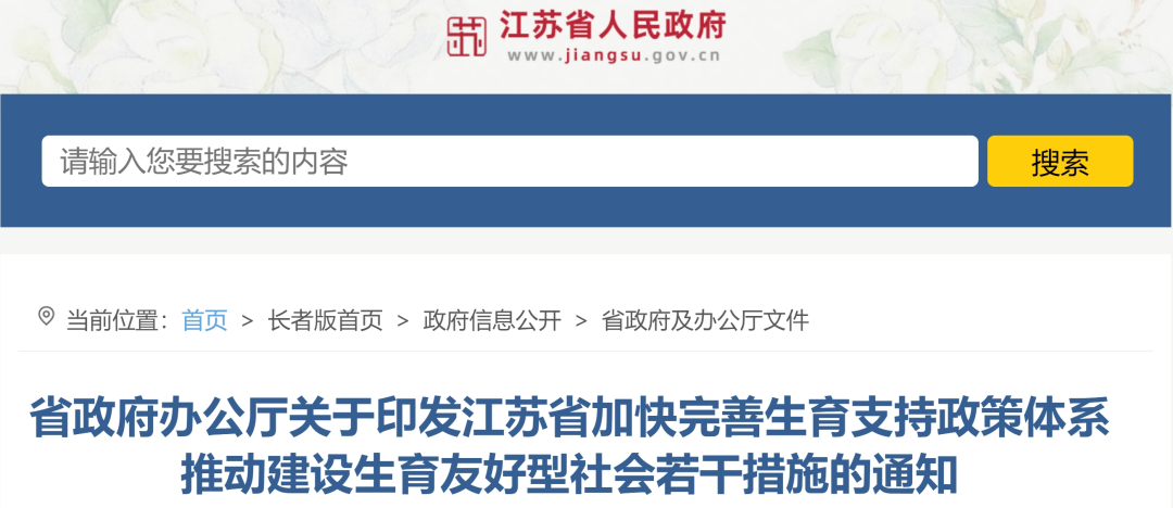 2025年《江苏省关于加快完善生育支持政策体系推动建设生育友好型社会的若干措施》正式出台。《措施》将企业支付女职工产假期间的社会保险费用补贴标准,在现行的对生育二孩、三孩补贴基础上,扩大到对生育一孩的给予50%的补贴。