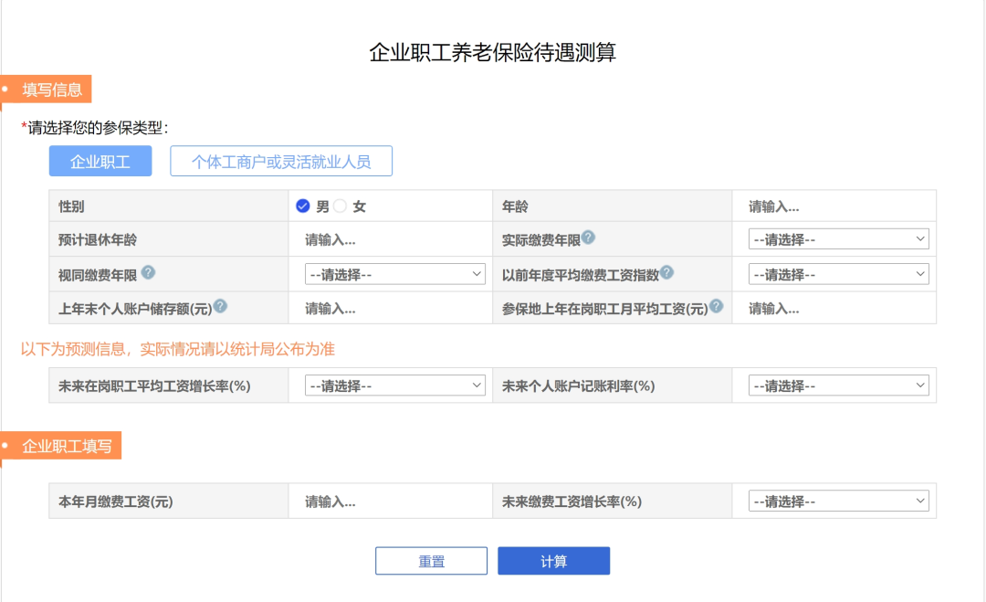我们可以通过国家社会保险公共服务平台来测算,只需输入几个数值,就能测算未来的养老金。