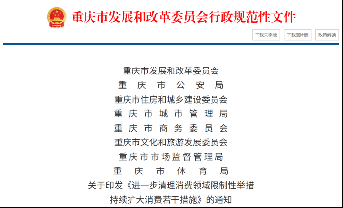 11月7日,重庆市发展改革委、市商务委、市市场监管局等8部门联合印发《进一步清理消费领域限制性举措持续扩大消费若干措施》。针对促进住房消费健康发展方面提出2点举措。