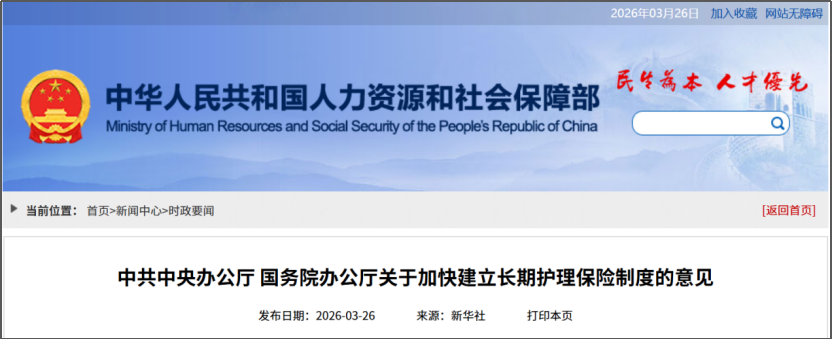 2026年3月25日,中共中央办公厅、国务院办公厅发布《关于加快建立长期护理保险制度的意见》(以下简称《意见》),标志着这项被称作社保“第六险”的制度正式结束10年试点,迈向全国建制新阶段。
