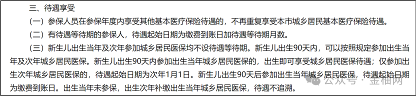 对新生儿、特殊人员等特殊群体制定专属待遇等待期规则,其中新生儿出生90天内完成参保,自出生之日起即可享受医保待遇,无需等待。