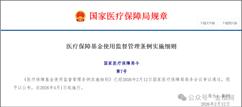 2026年4月1日起,《医疗保障基金使用监督管理条例实施细则》正式施行。《细则》对定点医药机构、参保个人等的欺诈骗保情形作出明确界定,进一步扎紧医保基金监管制度笼子,守护群众“救命钱”。